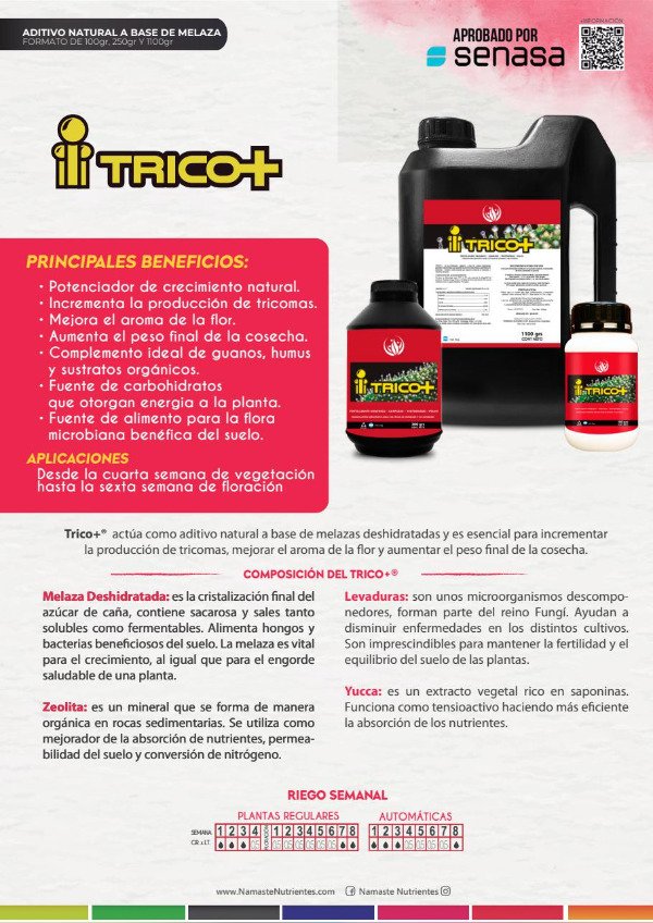 Potenciador de crecimiento natural para aplicar en período de floración. Fertilizante que actúa como aditivo natural a base de melazas deshidratadas. Es esencial para incrementar la producción de tricomas, mejorar el aroma de la flor y aumentar el peso final de la cosecha.