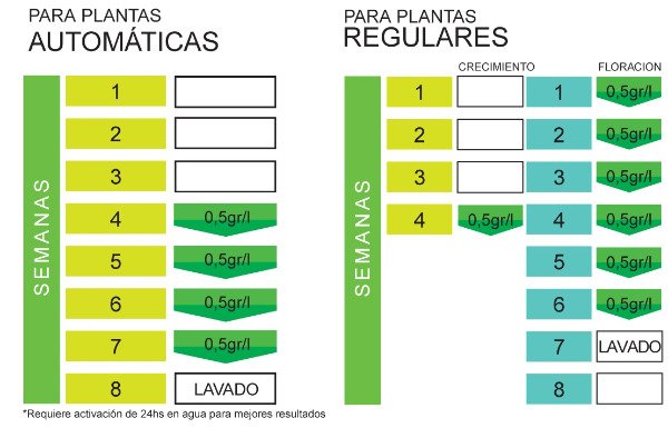 - Para plantas de exterior empezar a usar en el término del período vegetativo con la aparición de las primeras pre-flores.